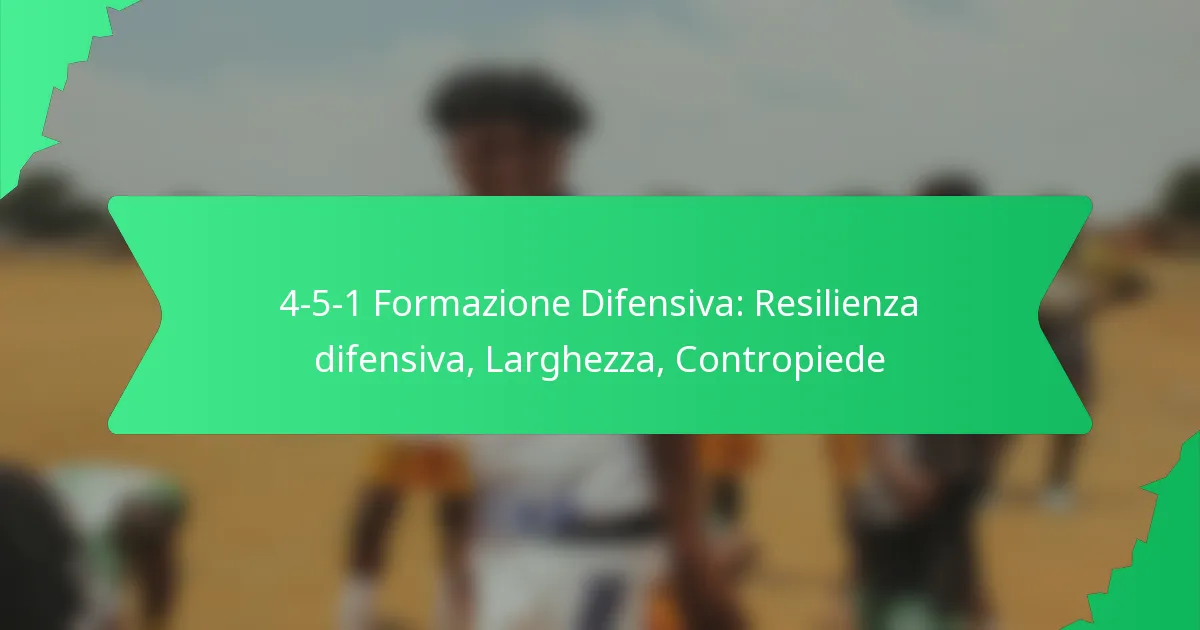 La formazione difensiva 4-5-1 è un approccio strategico nel calcio che prioritizza la stabilità difensiva offrendo al contempo ampiezza e potenziale per il contropiede. Con quattro difensori e cinque centrocampisti, questo schema crea un robusto framework difensivo in grado di assorbire la pressione e di passare rapidamente a giocate offensive. Utilizzando efficacemente le fasce, le squadre possono allungare le difese avversarie, migliorando sia la loro resilienza difensiva che le opportunità di attacco.